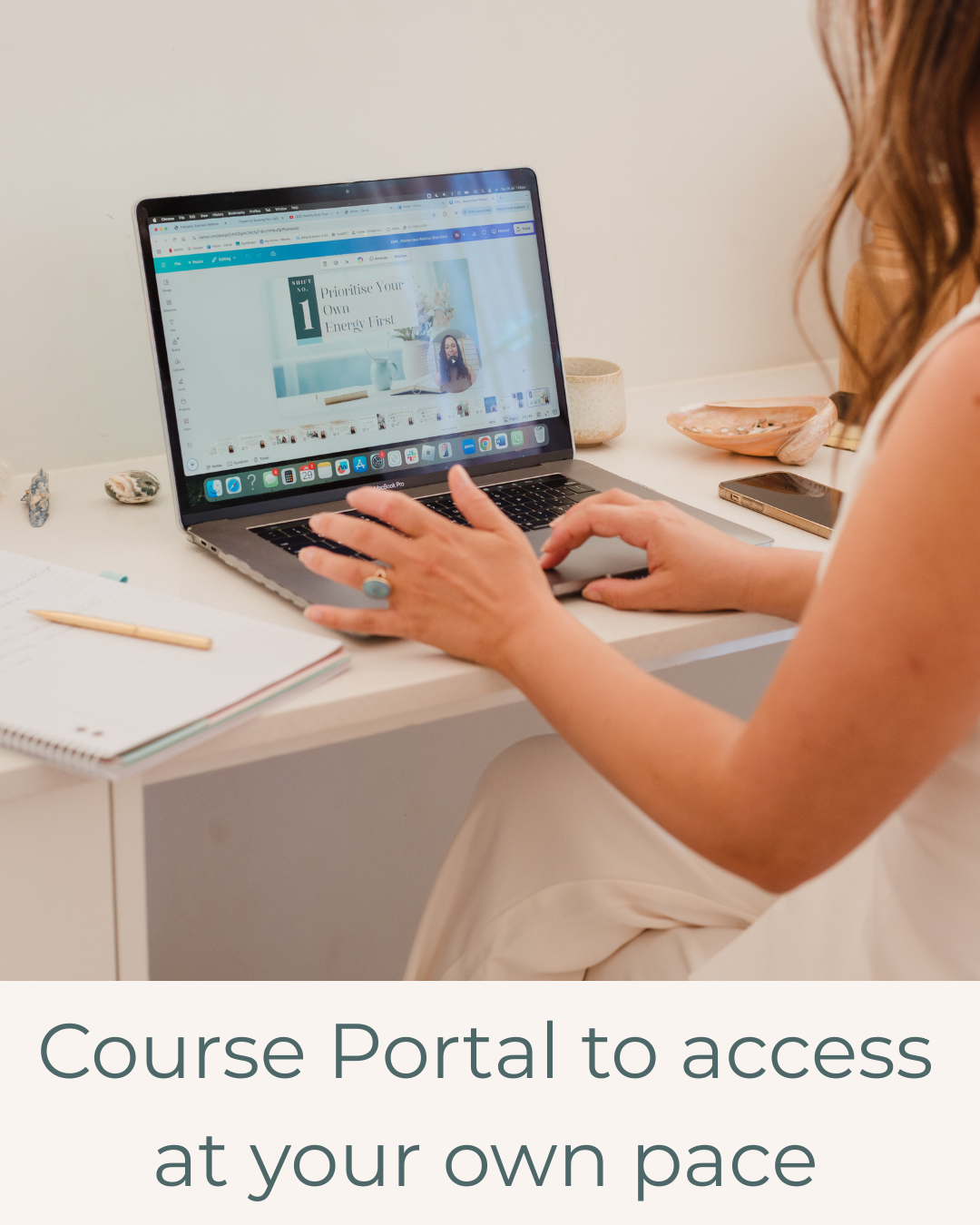 Inside your learning portal you’ll find video lessons, simple PDF summaries, and beautifully designed workbooks. These resources give you structure, clarity, and tools you can return to anytime.